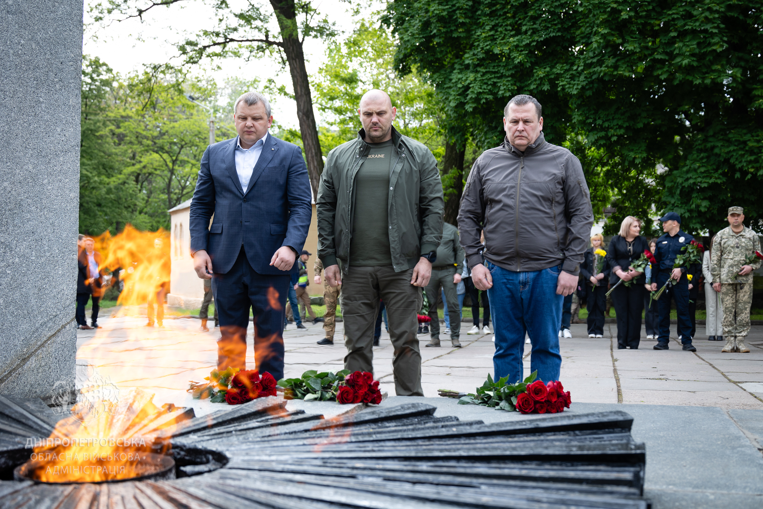 «80 років… Відколи сотні народів, об’єднавши всі можливі сили, знищили потвору – перемогли нацизм. Відколи всі, хто вижив. І їхні діти. І онуки. І правнуки… Кожен точно знає: це не має повторитися. Та сьогодні, вшановуючи жертв Другої світової, линули думками й до сучасних Героїв. Вони знову протистоять злу, що, переродившись в рашизм, руйнує, катує та вбиває. Спомин про них – вічний», – зазначив начальник Дніпропетровської ОВА Сергій Лисак.