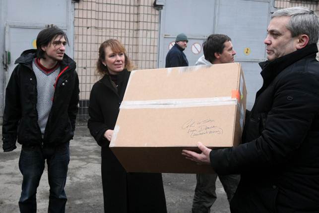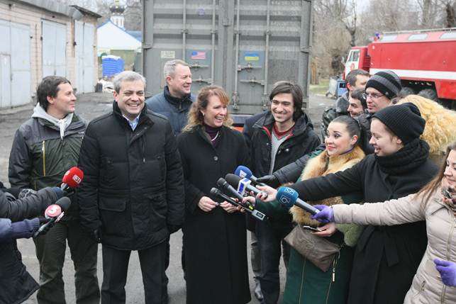 «Ви для нас – великий приклад того, як потрібно боротися за свою свободу. Наше серце разом з вами. Ми збирали кошти по всій Америці. Тільки для того, щоб доставити цей контейнер в Україну, знадобилося 20 тис дол. Вантаж спочатку був доставлений в Нью-Йорк зі штату Колорадо, потім через океан в Німеччину, з Німеччини – іншим кораблем в Польщу. З Польщі його доставили вже в Дніпропетровськ. Ринкова вартість того, що є в контейнері, трохи менша, ніж півмільйона дол.», - зазначила вона.