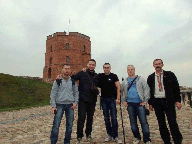 Василь Міщенко, Олексій Площанський, Євген Галочкін, Максим Андрущенко і Артем Сокур перед Палацом великих князів литовських