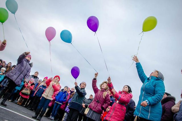 В небо запустили повітряні кульки.