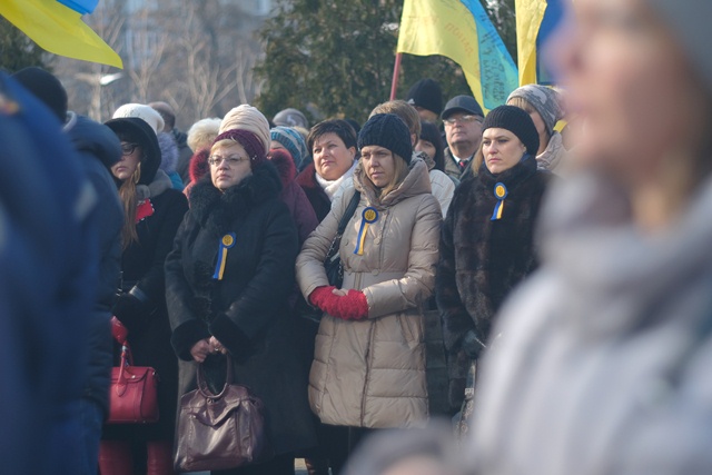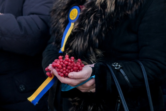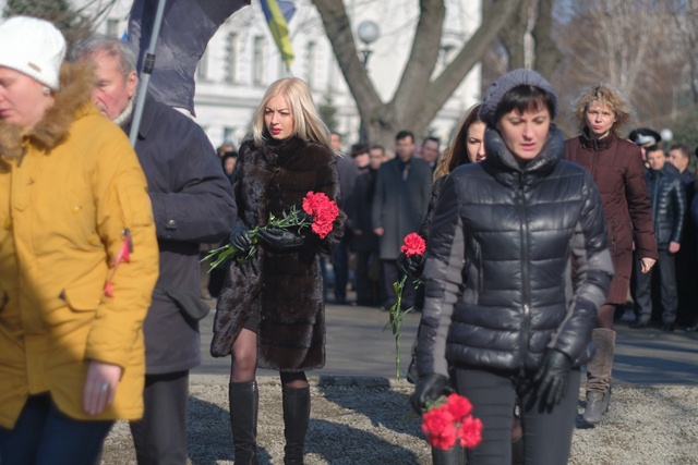 Народ збирається, щоб вшанувати пам'ять Героїв Небесної Сотні.