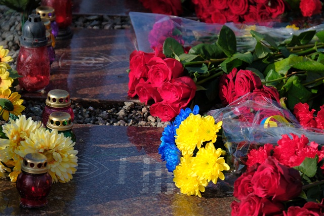 Люди приходять, щоб подякувати своїм Героям.