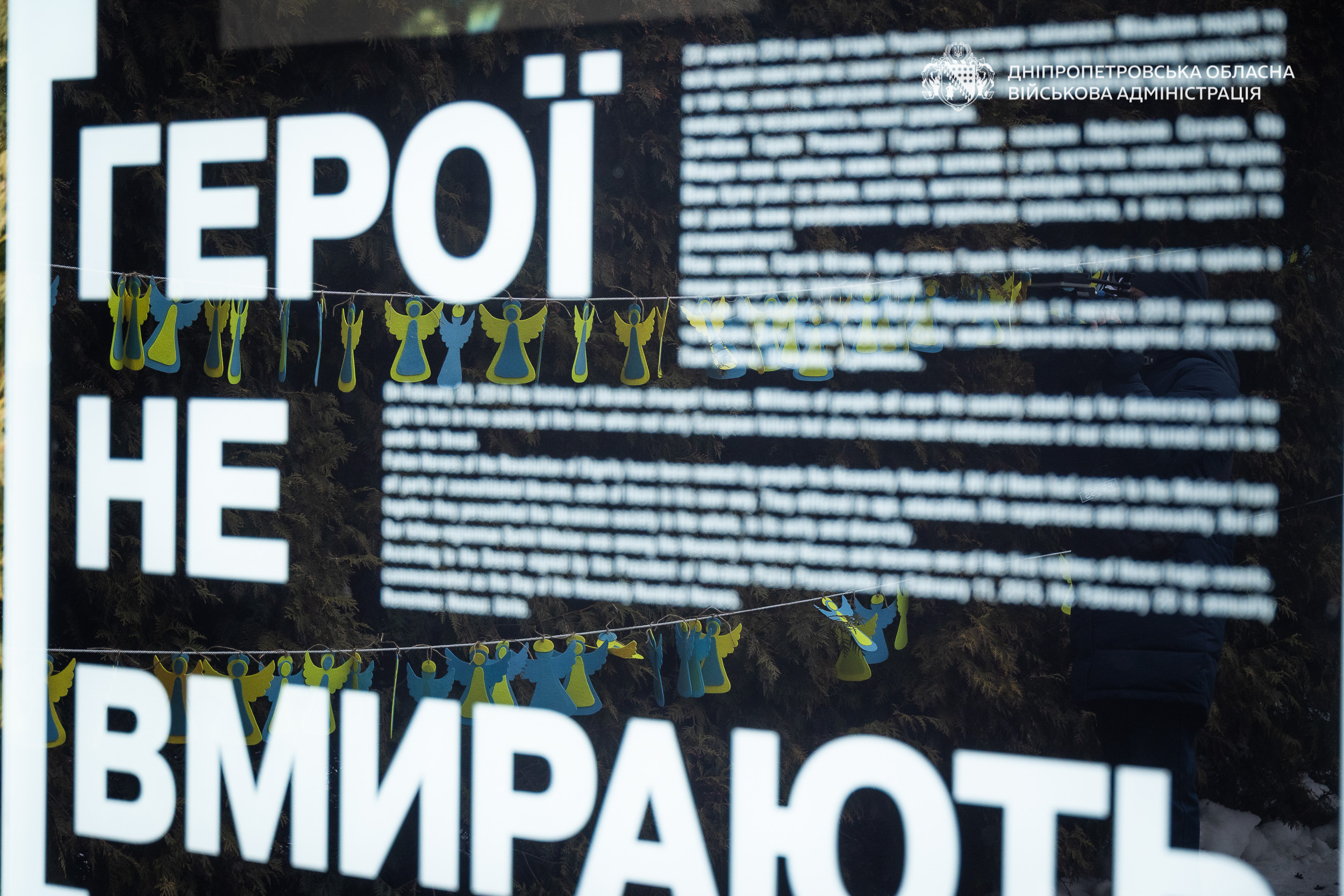 «Ми зібралися активною молоддю Дніпропетровщини. Зробили янголів. Вони символізують душі Героїв, які оберігають нас з небес. Які показали, що таке любов до своєї країни. Що таке бути рушійною силою», – розповіла представниця Дніпропетровського обласного молодіжного центру Лоліта.