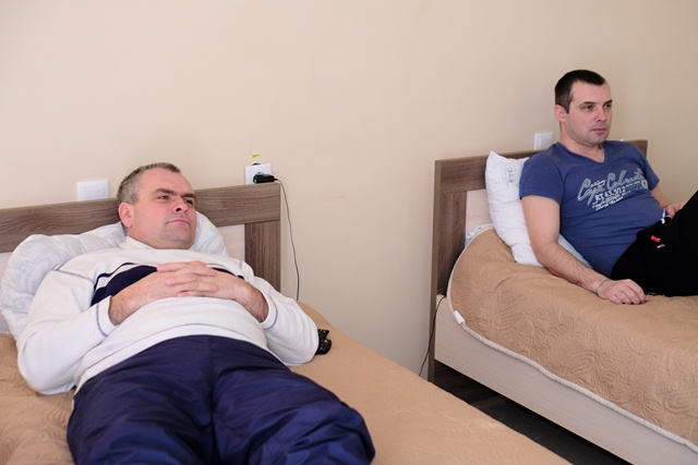 У реабілітаційному центрі бійці не лише приймають медикаменти. Вони поправляють здоров’я за допомогою лазерної терапії, магнітотерапії, ультразвукової інгаляції, масажів, лікувальних ванн, грязей та навіть спеціального обладнання для «гімнастики» судин. Чоловіки займаються на тренажерах, малюють, слухають релаксуючу музику, відвідують басейн, а ще спілкуються з психологом.