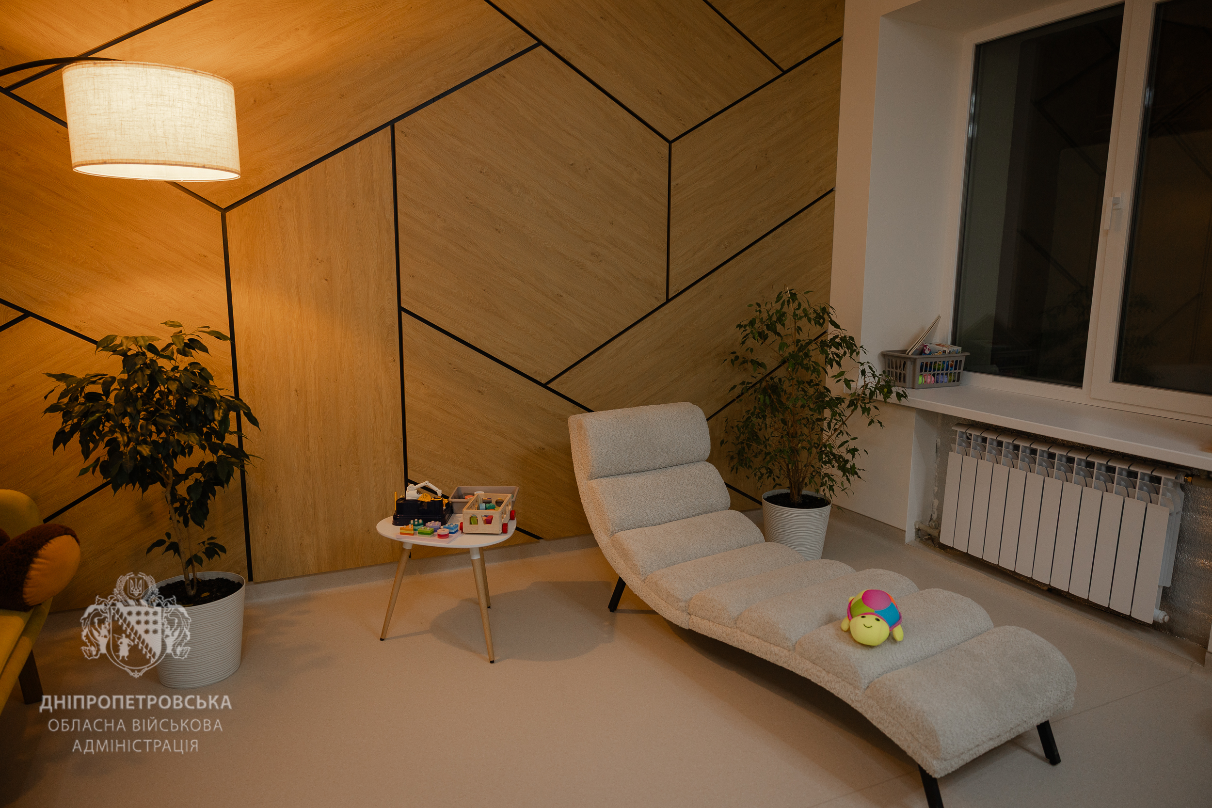 Під Центр ментального здоров’я відвели окремий простір. Інтер’єр затишний. Тут прагнули створити комфорт без «лікарняної» атмосфери. Врахували принципи безбар’єрності.