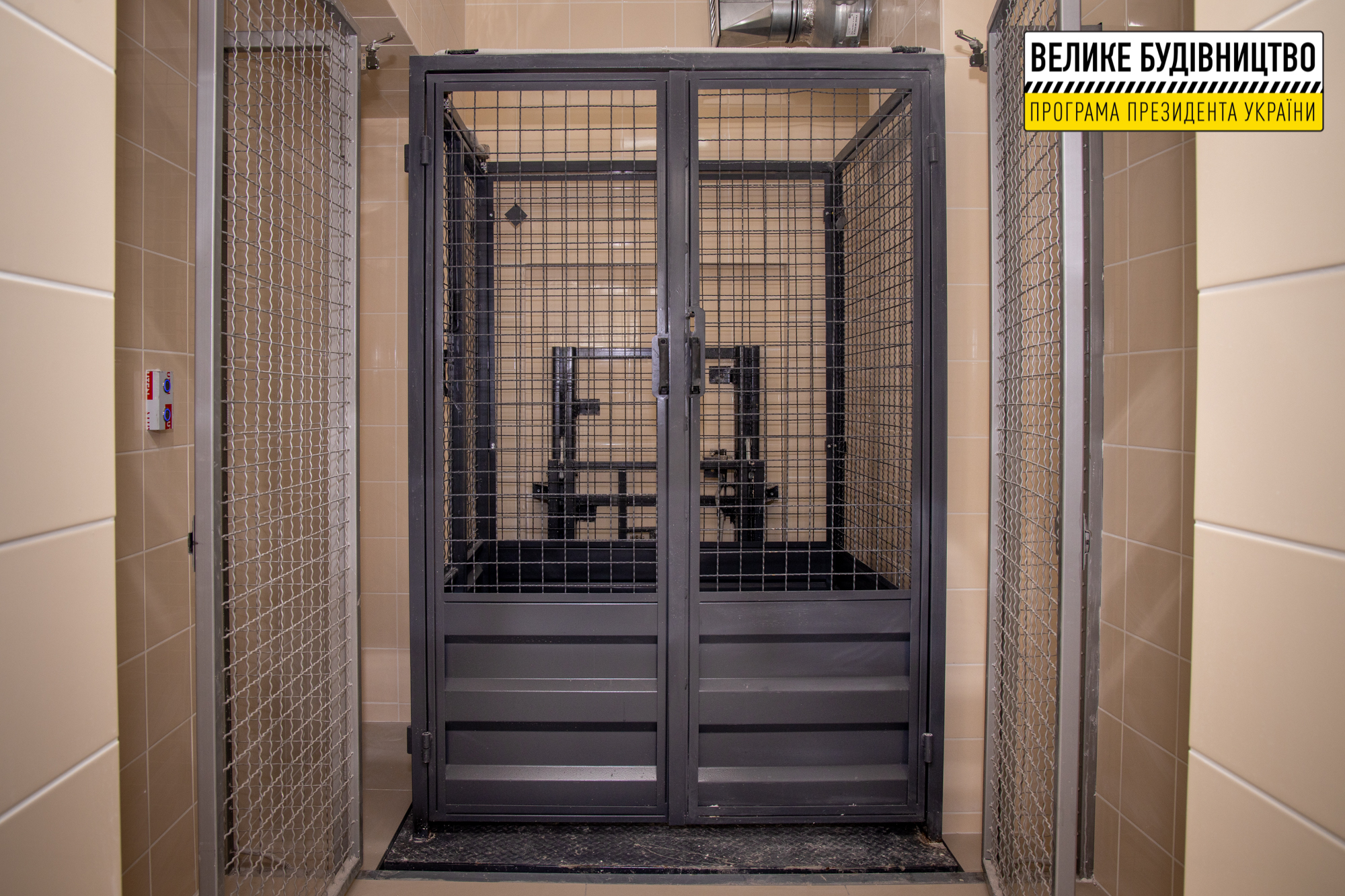 Між поверхами встановили вантажний ліфт. Підйомник доправлятиме продукти зі сховища на кухню.